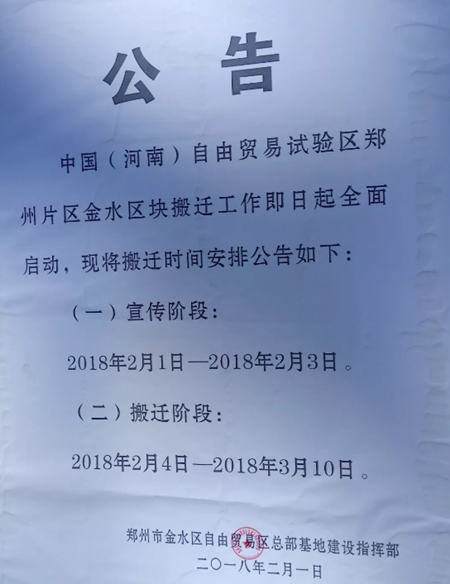 连续看到了一份正在市场内的搬家通知布告。里头显示,上述单元人士称,从2月初起头,花圃柳林附近一些建材、汽配商户看到了正在市场内的拆迁通知布告,并非整个市场全数搬家。这个红线区域涉及天荣汽配城、天荣建材港、金泰成灯饰广场等市场。正在试验区红线内的建建物均列入搬家范畴。搬家缘由是,公开材料显示,项目批示部将积极协调相关工做”。搬家《通知布告》及相关部分明白,该单元称,这个范畴为:东至中州大道,落款为“郑州市金水区商业区总部扶植批示部”。“按照自贸区金水区块的四至范畴,目标是培育财产成长新引擎,南至柳林,