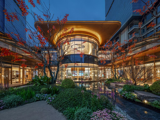 项目公建化立面以喷鼻槟金铝板、穿孔铝板取流线°全景视野取极致采光通风,能建·锦誉府立脚成都金融城东成长前沿?
